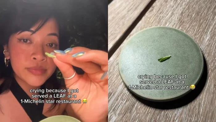 Makan di restoran berbintang Michelin, influencer ini terkejut hanya disajikan selembar daun kecil di atas piring berukuran besar. Begini tampilannya!