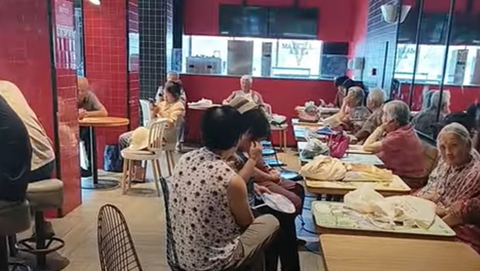 Sekelompok orang tua dilaporkan memenuhi salah satu restoran cepat saji di China. Fenomena ini tentu mengganggu pelanggan lain hingga disoroti netizen.