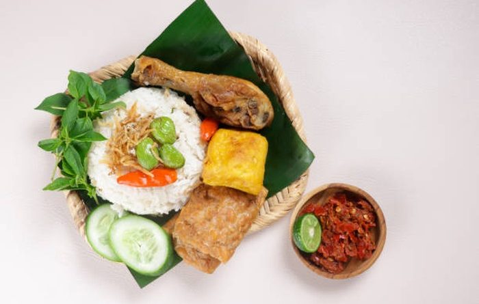 3. Tambahkan lauk sesuai selera, seperti ikan asin, tempe, tahu, ayam goreng, dan lalapan segar.